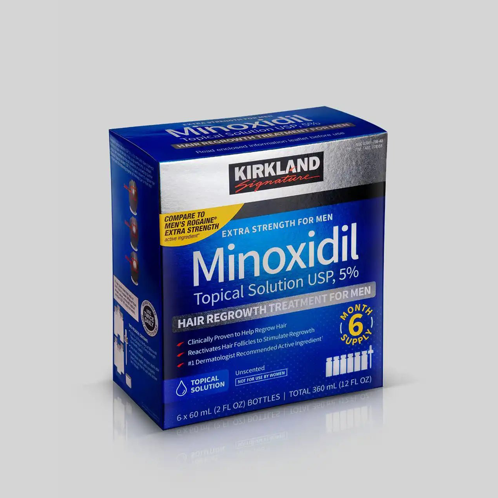 06 Frascos com 60 ml (KIRKLAND SIGNATURE® FORÇA EXTRA ORIGINAL – MINOXIDIL 5%)
